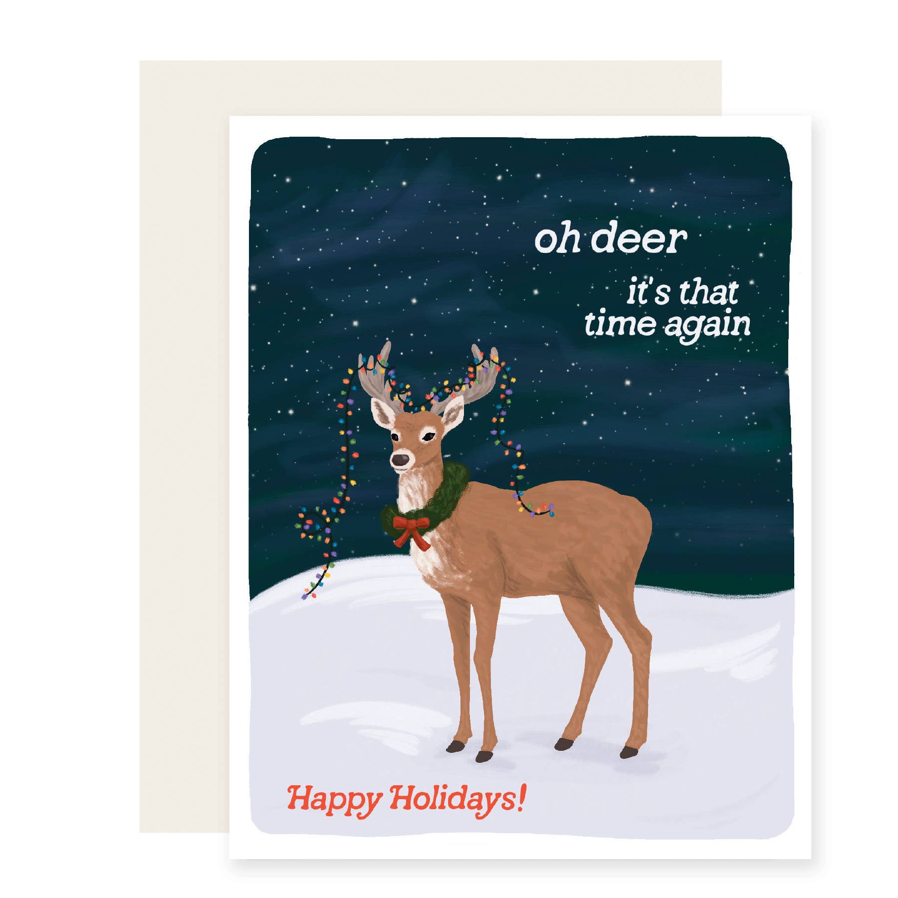 Blank inside. Size A2 (4.25" x 5.5"). Printed in the USA on heavy 100% PCW recycled paper. Paired with a 100% recycled brown kraft envelope. Packaged in a biodegradable cello sleeve.