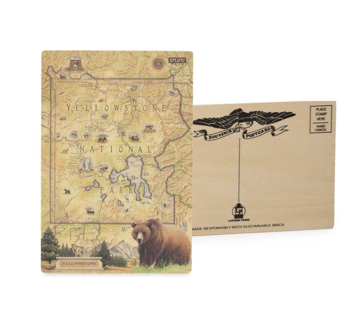 Yosemite National Park postcard featuring a bear fly fishing in the Merced River in California. This is a single postcard from our National Parks series. Each card is 5x6.375." Offset printed on 120# uncoated paper.