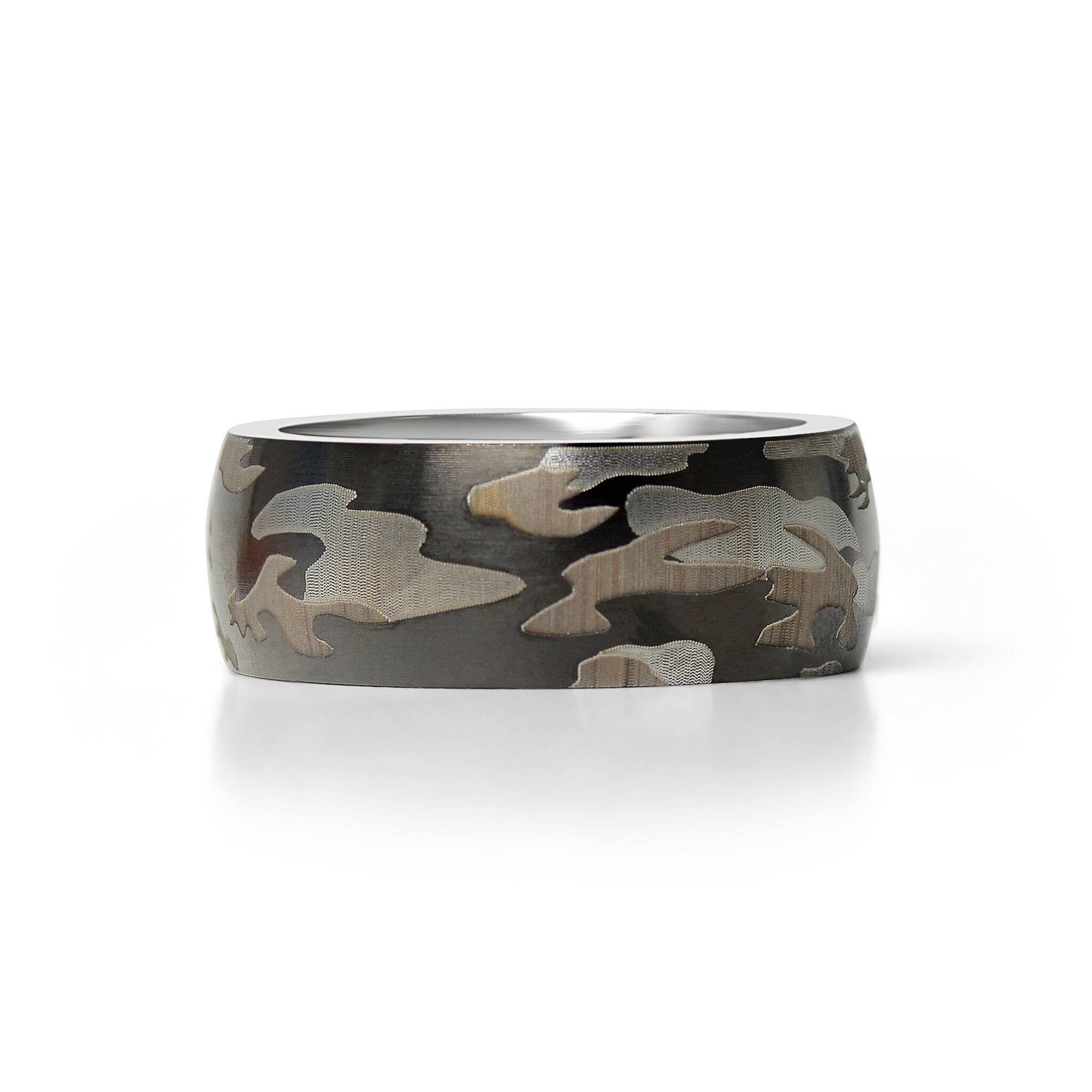 Elks in the Fir Forest Pattern Engraved Tungsten Ring, Mens Ring, Women Ring Elks in the Fir Forest Pattern Engraved Tungsten Ring, Men's Ring, Women Ring, His Hers Wedding Bands, Custom Engraved 8mm, 10mm, 12mm The price is for one ring only. Specification Carbide Wedding Bands - FINISH POLISHED - THICKNESS 2.0 MM - 2.3 MM - WEIGHT 6 - 15 GRAMS - COMFORT FIT AND SIZING - DURABLE - HYPOALLERGENIC - SIZES AVAILABLE 4-16US INCLUDING 1/2 SIZES Shipping & Complimentary - Gift Box - Laser Engraving - Fast US Shipping (3-5 day) We ACCEPT custom orders!!! This ring can be done upon your request in Silver, Black, Rose Gold, Yellow Gold, and Blue colors. Width available: 8mm, 10mm, 12mm width. Sizes available: 4.5- 161/2 sizes included.