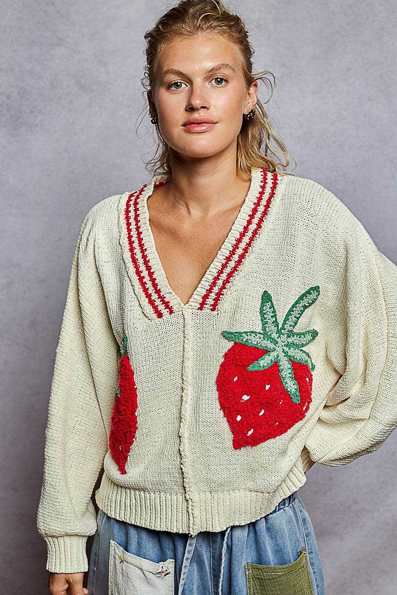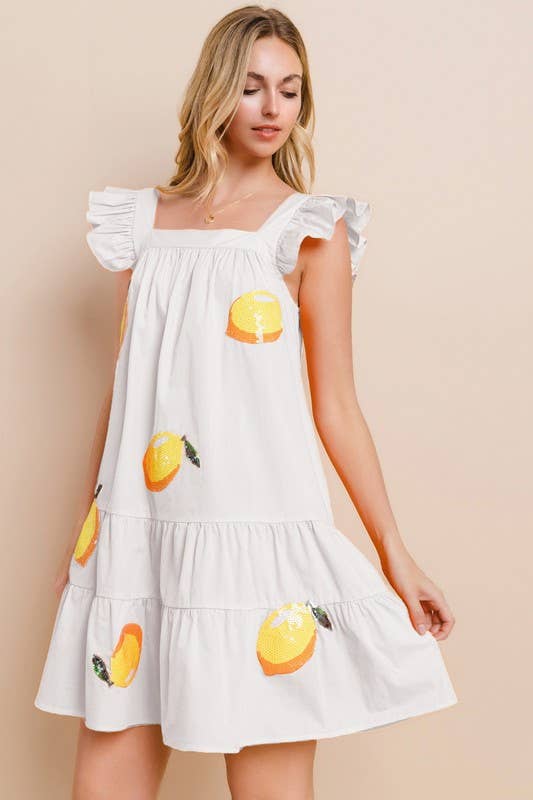 Short sleeve "Lemon Drop" graphic knitted sweater. Also available in sizes 1XL to 3XL: Style no. IT18025P. Total Length: 23" Content: 60% Cotton, 40% Acrylic