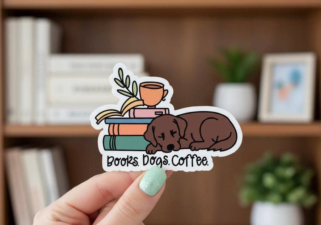 Pre-bundled in 12 packs. Suggested retail: $3.95 per sticker 2.63” W x 2.88” H Matte finish and water resistant Made in the USA We believe in everyday art. That's why we make stickers. Affordable, super fun, expressive, a great memento, and a stellar conversation starter. With stickers, the world is your gallery. Keywords: sticker, stick, em, gift, made in usa, vinyl, dog, beagle, coffee, bagel, canine, pun, doggo, doggy