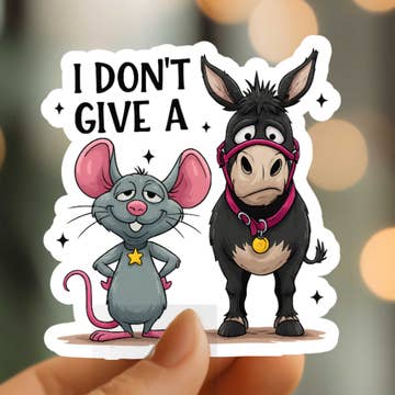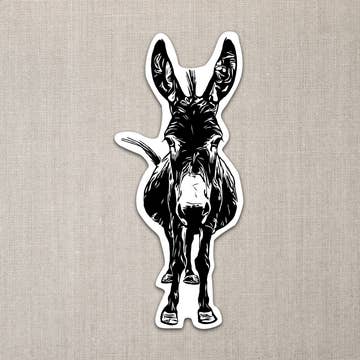 ~BESTSELLER~ Affordable waterproof donkey stickers will last for years. Built tough to resist fading and cracking. They are made in the USA with high-quality and waterproof material and measure 5 inches wide and 3 inches tall once removed from the backing — ideal for cars, trucks and trailers. Perfect impulse and Cash-Wrap Item! Comes with a peel-away backing for easy hanging and display. High-quality, Donkey Euro Stickers! Final size: 5" x 3" Peels away from backing with hole for hanging. Waterproof! Artist and creator, no AI (no artificial intelligence). Everything starts in my head, then to a drawing board and then to the computer to set up for the printer. Easy to display hole in peel-away header. For cars, trucks, trailers, lap tops, computers, identify your suitcase at the airport! Affordable horse decals and designed to last! We are confident these stickers will sell through for you. These stickers are: • High-quality and heavy-weight • Waterproof • Inexpensive, customers buy more than 1 • UPC bar coded • USA Made American brand • Ships from US, no import duties • No tariffs • No AI (no artificial intelligence) • 52% margin • FREE Shipping ~ ALWAYS (we have never charged shipping in 35 years of biz) :-D • LOW order Minimums • 35 Years serving retailers • FREE Sample Pack with each order* "Stickers sold great and I will be doing a re-order soon.” -Adams Horse Supplies & Farm Store *We love our retailers that each order gets a FREE sample pack of things you didn’t select to try. The samples are included on a google doc of UPCs, ret: $6-8.