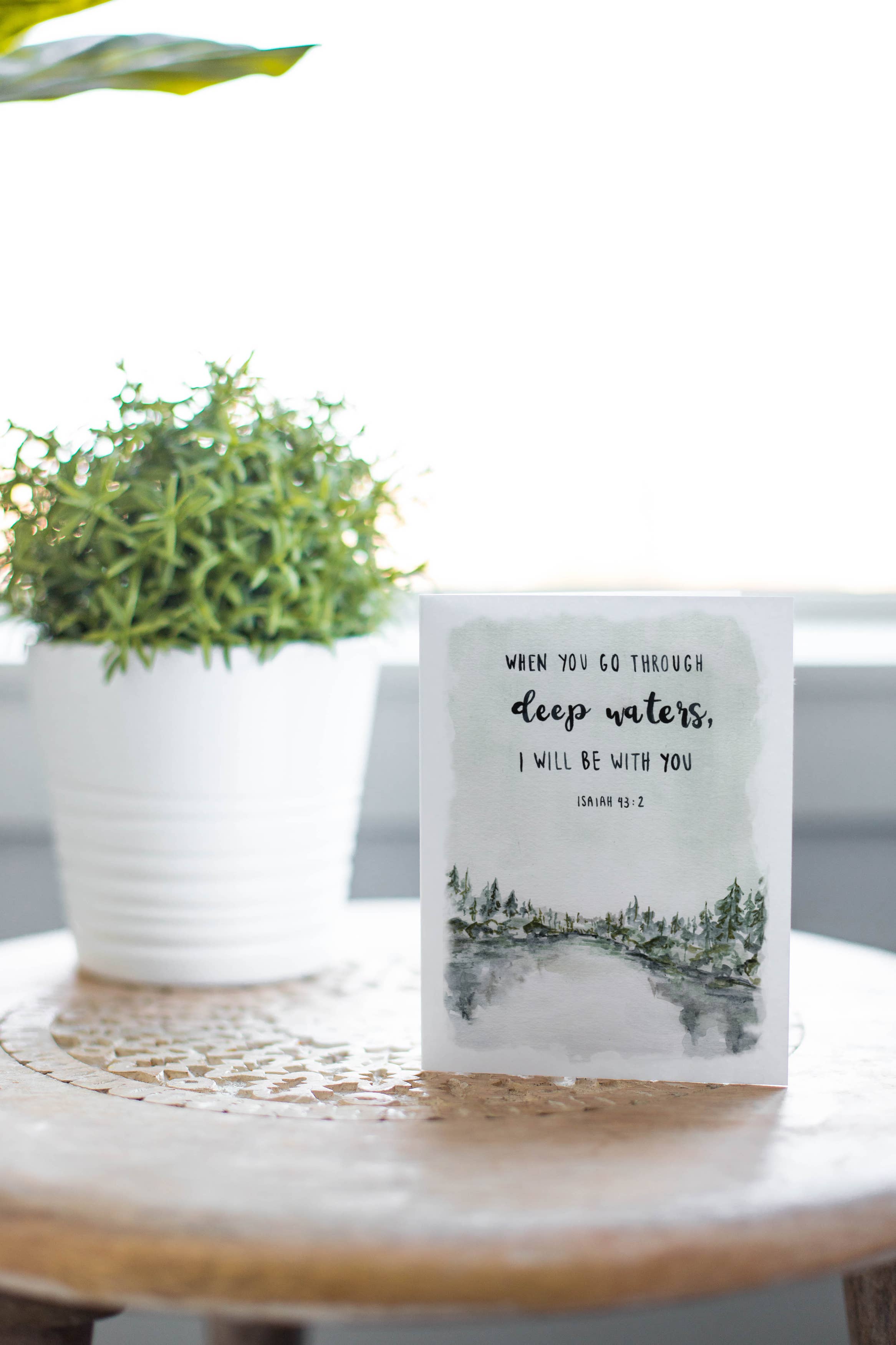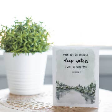 The calm of natural florals and the peace of the words of the Psalms...this card is a powerful note for all who are comforted by scripture. This card works well as a thinking of you card, a sympathy note, a bereavement card, or anyone in need of soul rest. Hand-lettered "He leads me to still waters; He restores my soul. Psalm 23" with hand-painted floral border. Blank inside. Digitally printed on #110 felted white stock. A2 card with final dimensions of 4.25" x 5.5" Packaged with a beige Kraft envelope in a clear cello sleeve. Blank on the inside.