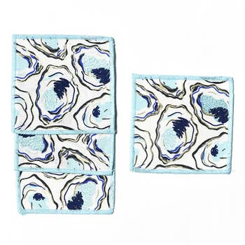 Dive into coastal charm with our Seaweed Napkin. Featuring a serene underwater scene. Delicate crabs, graceful sea turtles, and lively fish swim amidst flowing seaweed, all beautifully printed in muted watercolor shades of blues, greens, and browns. Subtle coral accents add a pop of color against the crisp white slub fabric, creating a perfect balance of soft, natural hues. Measuring 20" x 20"", it's the perfect size for any dining setting, making every meal a seaside escape.