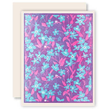 Everyday greeting card featuring a branch of lilac blossoms. Each design is hand-painted then scanned and printed onto archival paper. Cards are blank inside to add a personal message. Each card comes with a white envelope and is wrapped in a clear sleeve.
