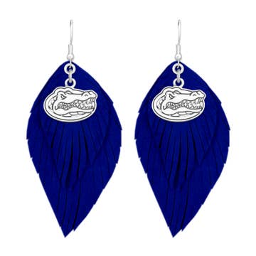 Silver plated post earrings with orange, blue and green enamel featuring the Florida Gators logo. This is an officially licensed product.