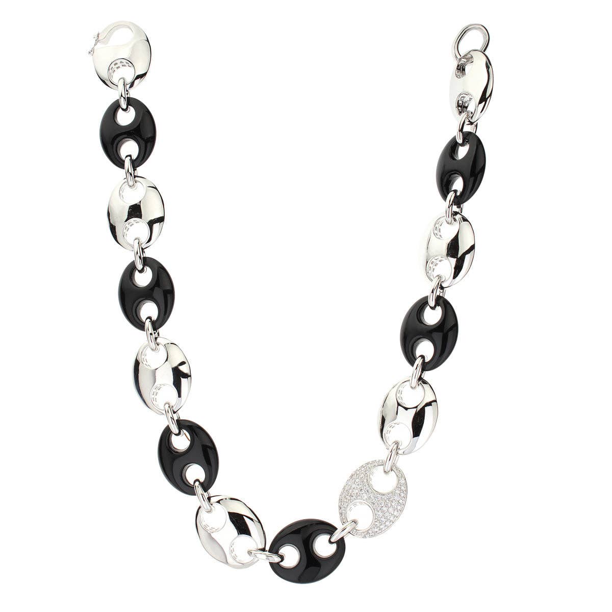Part of the Psychedelic Swirls collection, this necklace is crafted of a solid brass base and is plated with rhodium. They feature finely hand painted Gray enamel and cubic zirconia for a classic look.
