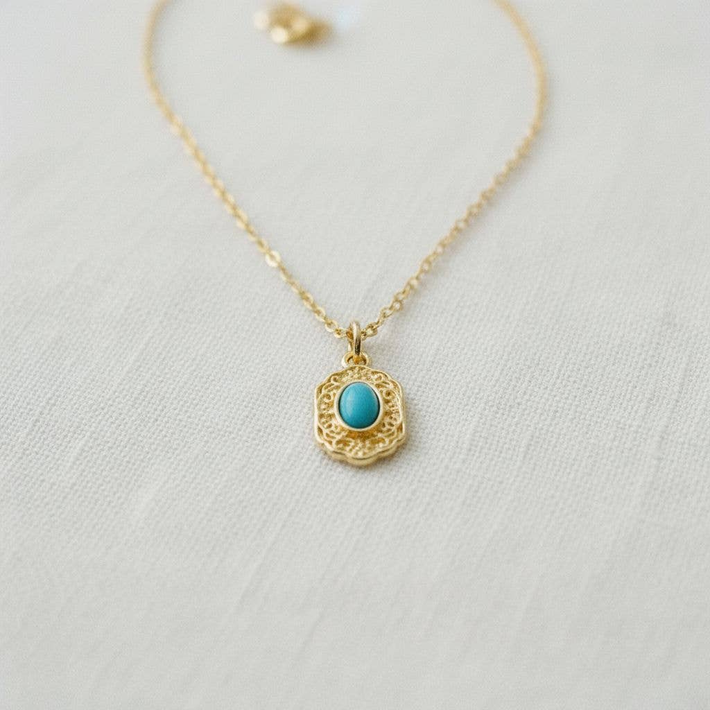 Solid Gold Turquoise Necklace