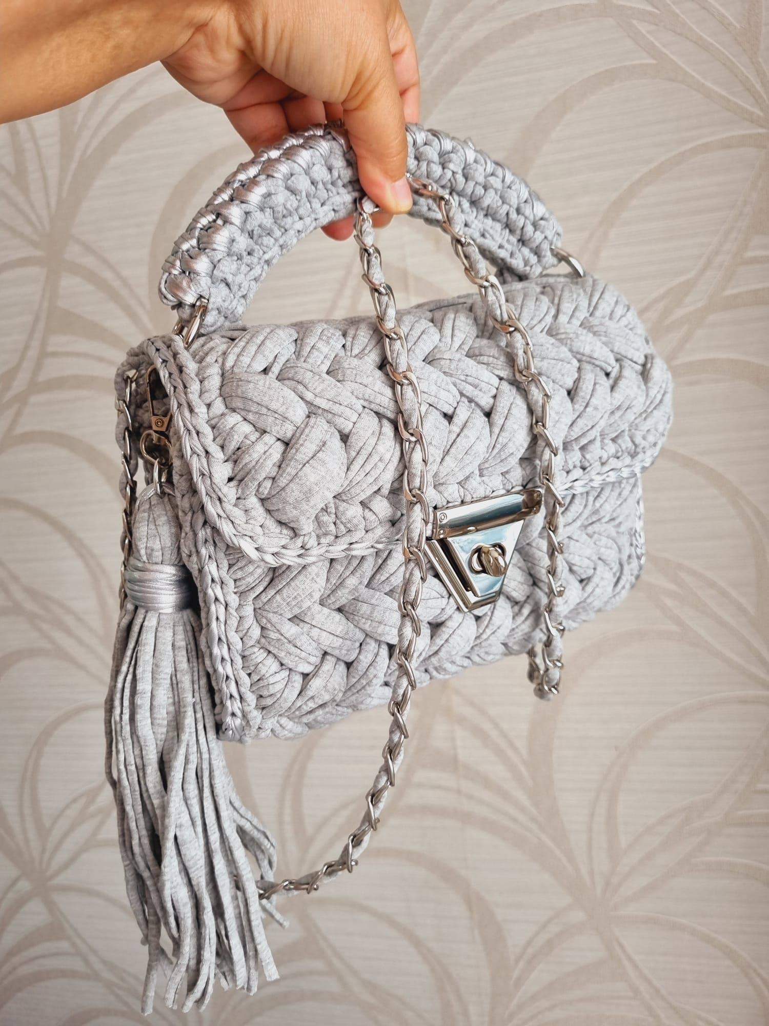 * 𝐔𝐍𝐈𝐐𝐔𝐄 𝐂𝐑𝐎𝐂𝐇𝐄𝐓𝐄𝐃 𝐁𝐀𝐆: %100 handmade bag is suitable for many fashion styles, can hold many items, phones, makeup, sunglasses, purses. (Size: 9x8x4 Inches - 23 (L) x 20 (H) x10 (W) Cm) It will complete your elegance with daily and evening clothes. * 𝐄𝐕𝐄𝐍𝐈𝐍𝐆 𝐂𝐋𝐔𝐓𝐂𝐇 𝐇𝐀𝐍𝐃𝐁𝐀𝐆: When you carry our crocheted bag on the beach, wedding, party or on the street, its sophisticated design and stunning trendy look will attract a lot of people’s attention. It shows off your fashionable and elegant taste. * 𝐍𝐀𝐓𝐔𝐑𝐀𝐋 𝐇𝐀𝐍𝐃𝐌𝐀𝐃𝐄 𝐏𝐔𝐑𝐒𝐄: Handmade crocheted bag made of premium T-shirt combed yarn with cottons.