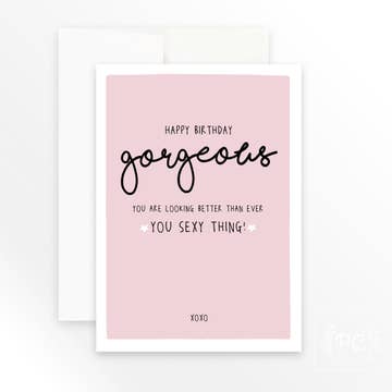 Get right to the point with this funny birthday card for your boyfriend, girlfriend, wife, husband or significant other. Let them know that you want to celebrate their birthday the right way. Ooh la la. Birthday Card Message: Happy Birthday you Sexy Thing. Inside: Blank THE DETAILS: • Single letterpress greeting card. • High quality white 100% cotton paper (tree free paper!) • Size A2 (4.25x5.5), folded greeting card, blank inside. • Each greeting card includes one kraft envelope and is individually packaged in a clear sleeve. LETTERPRESS PRINTED: What does this mean? Letterpress is the highest quality of printing. The inks are hand mixed and printed using vintage platen presses. The ink is pressed into the page to create a texture that is the reverse of embossing. The quality and texture is unmatched and can't by replicated by modern printing. MADE IN THE USA: All greeting cards are designed and printed by Kincaid Creative Design Studio + Letterpress.