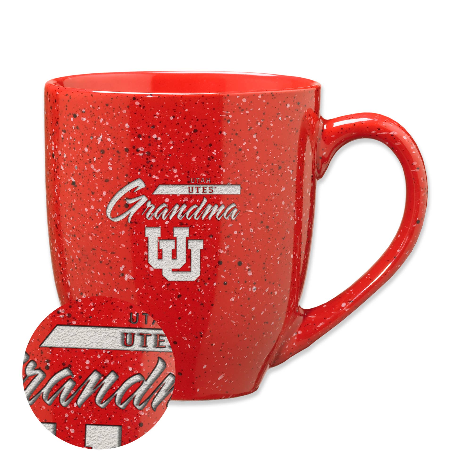Officially Licensed Product. Utah Utes 11 ounce ceramic mug printed with our popular vortex design. 6 pieces in an inner pack 36 per case.