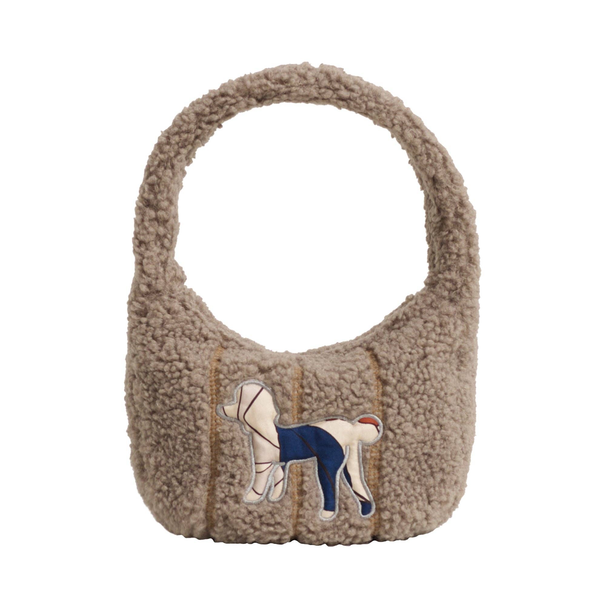 Made from dead stock fabrics, this faux shearling sherpa tote bag in white is an eco-friendly way to carry your stuff around in style. The Lost Pattern team uses only materials that were left over from other projects, so this bag has a story as rich as its look. The dog motif is embroidered with 100% silk fabric and it is unique on each bag. The inside lining is made of viscose printed with our in-house designs, which is like a little hidden piece of art. With our commitment to sustainability, we know you'll feel good about carrying this bag and even better about the environment! Measurements: 29cm x 28cm (11.4 in x 11 in) excluding top handles.