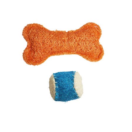 AWARD WINNING 100% Organic Vegetable Dental Toy Natural Meat flavored Teeth flossing, Shredding Toy Meant to be Shredded and Destroyed! The shredding action flosses the teeth! Made of 100% Vegetable Loofah Plant Solid Loofah Vegetable, No Stuffing Inside Displayed on Recycled Plastic ECO Backing Winner of multiple Editor's Choice and ECO Excellence Awards!