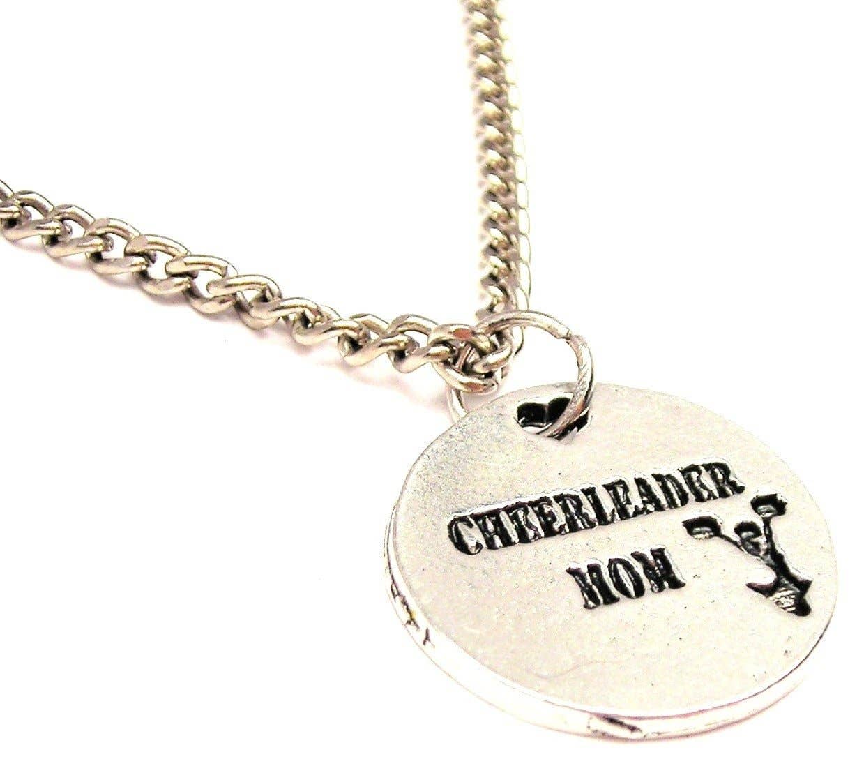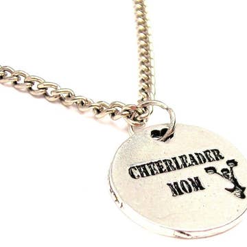 "Volleyball Mom" is hand stamped onto a 1.25" aluminum washer with a white enamel volleyball charm. Comes on an 18" sterling silver plated snake chain.