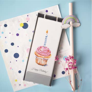 Celebrate any moment with our best-selling Birthday Cake travel candle! This sweet, nostalgic scent blends warm vanilla cake, whipped buttercream frosting, and a sprinkle of sugar — capturing that “just blew out the candles” feeling in every burn. Perfectly sized for gifting or travel, these tins are a must-have for boutiques, gift shops, and pop-up displays. Retailer Highlights: 💖 Top-selling fragrance: Always a customer favorite especially for birthdays and celebrations. 🕯️ Compact & gift-ready: Perfect impulse buy size and ideal for bundling with other products. ✈️ Travel-friendly design: Durable, lightweight tins with a clean, modern look. 🌿 Clean-burning soy blend: Hand-poured for a long-lasting, eco-friendly burn. 🎁 Year-round appeal: Sells well beyond birthdays shoppers love it for its cozy, comforting scent. 3 1/4"H x 3 1/4 4oz. Approx. 20-40 hours burn time soy blend wax with wooden wick and matte white tin Hand poured and Made in the USA psales tattion of ffragrances