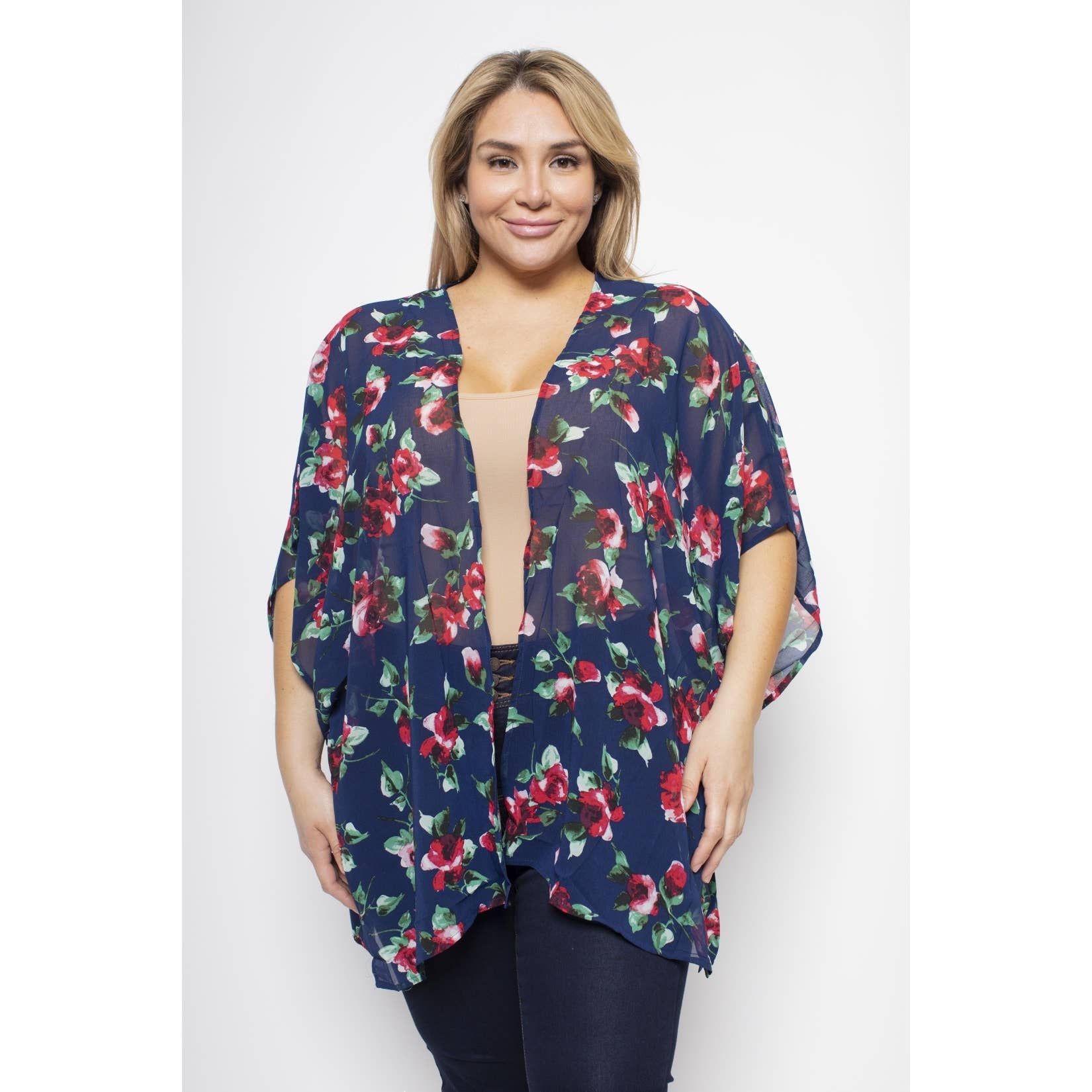 A solid color loose fit kimono style cardigan is a versatile and comfortable garment that can be worn in a variety of settings. This type of cardigan typically features a flowing and relaxed silhouette, inspired by traditional Japanese kimono robes. The cardigan can be dressed up or down, depending on the occasion. It can be worn over a basic tank top and jeans for a casual daytime look, or paired with a dress and heels for a more formal occasion. The versatility of the cardigan makes it perfect for travel or transitional seasons when the weather can be unpredictable.