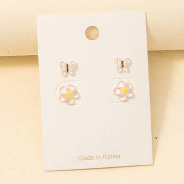 SKU: E-45 Color: White and Yellow Is Set: Set Material: Gold Plated, Stainless Steel, and Stone Occasion: Easter and Sweet 16 Style: Whimsical Theme: Nature Weight: 14.17 g (0.5 oz) UPC: 718852329919