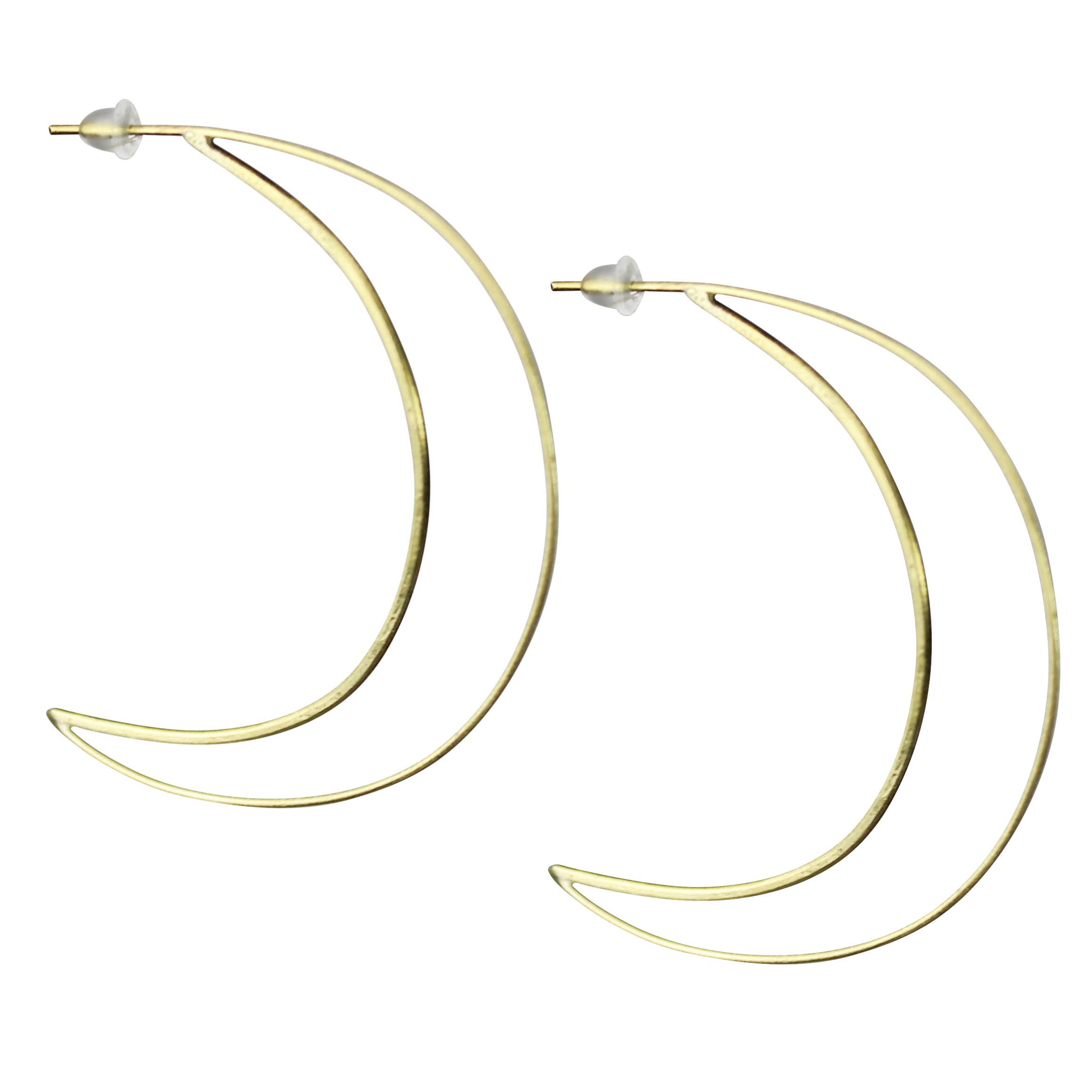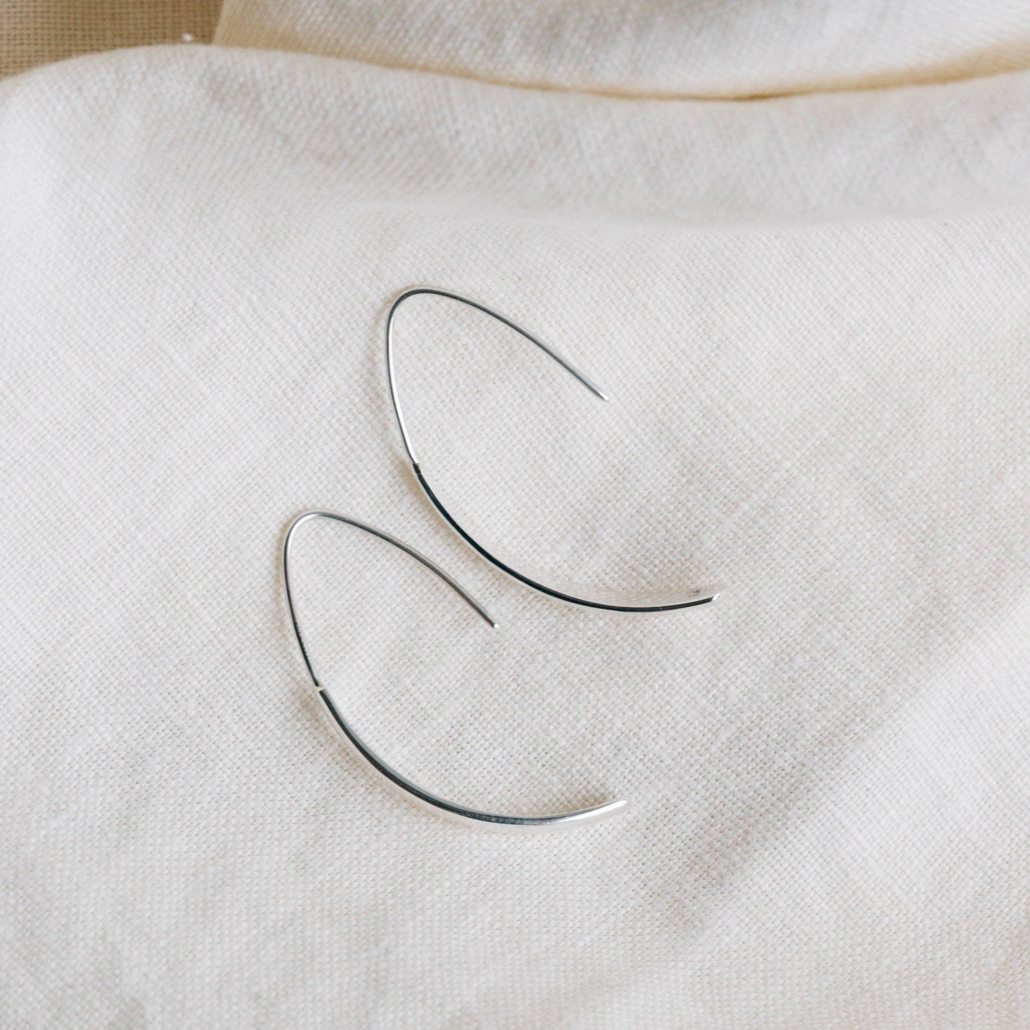 Extremely lightweight and completely sterling silver, these are perfect for sensitive ears. The crescent moon shape can be worn in either orientation, creating a unique hoop-like look for the wearer, Earrings are sterling silver, hand formed and textured and on sterling silver hooks. Earrings are 2-2.5 inches in length..