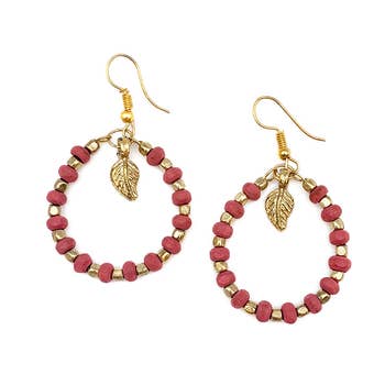 Handmade with glass beads and gold plated stainless steel ear wires. 1.5 inches height x 0.5 inch length x 0.5 inches wide The Raspberry Earrings are handmade in a fair trade workshop in Guatemala.