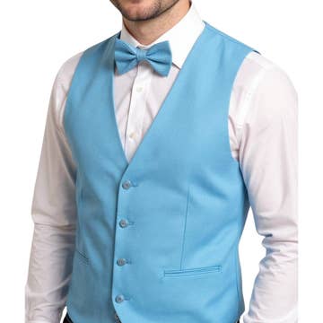 Vittorio Farina Men's Solid Satin Vest Set (White back): * HIGH QUALITY MATERIAL: The material of the vest is strong, durable and wrinkle resistant. Soft and lightweight with no fading, no distortion, anti-wrinkle, and quick dry. Polyester, Machine Washable and Tumble Dry. * FORMAL VEST: Formal Suit Vest with adjustable back metal strap with buckle for Comfort Fit, Sleeveless, V-Neck, and Single breasted. 9 optional sizes and 14 optional colors. 5 Button Front. Full Cut Size for Suit or Tuxedo. Traditional solid color fabric gives a gentle and simple look. Variety of colors offers you a wealth of options, easy to match all suits. * BOW TIE, NECKTIE and POCKET SQUARE included.