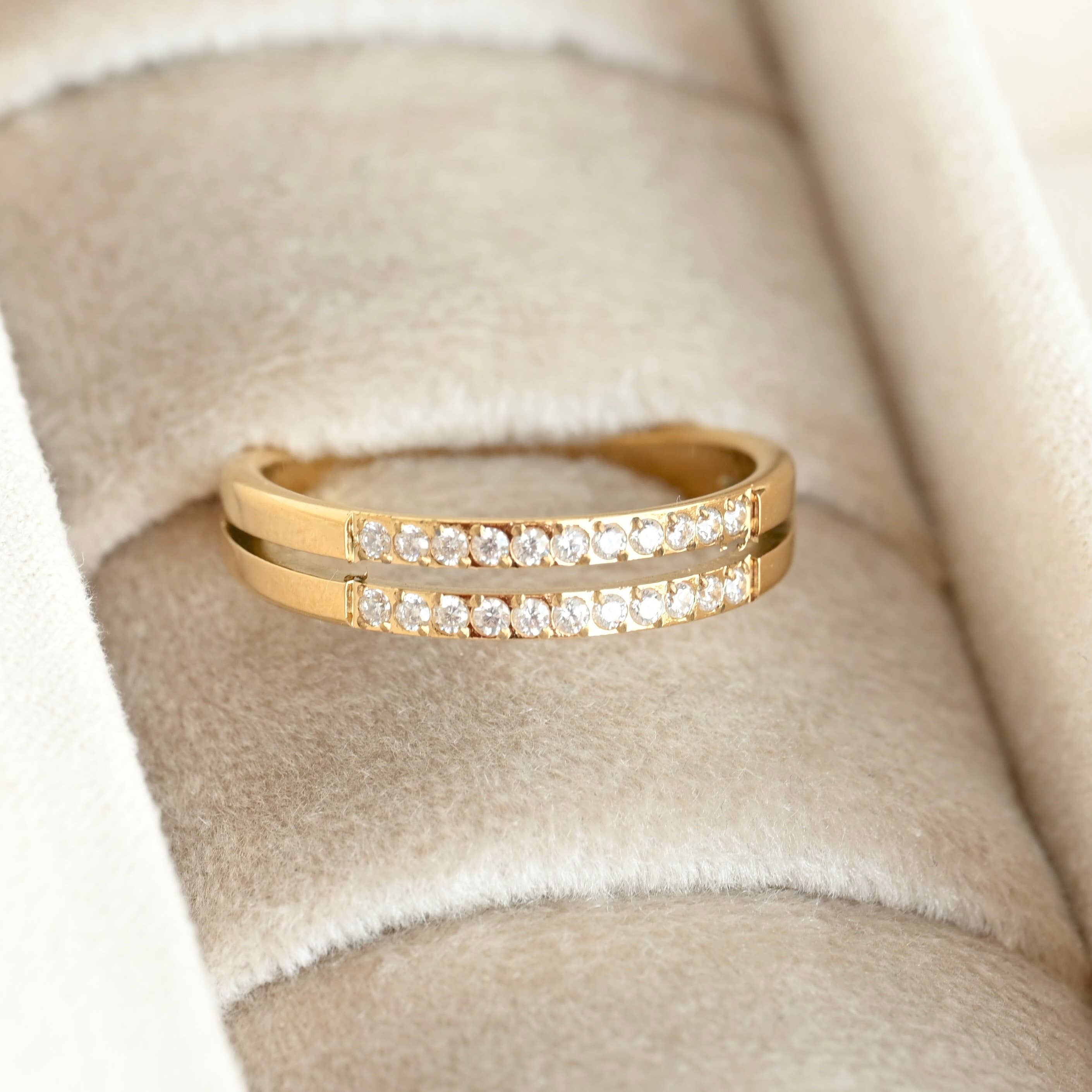 These shimmer rings are just the perfect touch to any outfit. Wear them morning to night, you're sure to shine all day! These rings will not turn or tarnish-so wear them with all of your other rings; you can't pass these little cuties up! Waterproof Gold Cubic Zirconia Available in sizes 5-8
