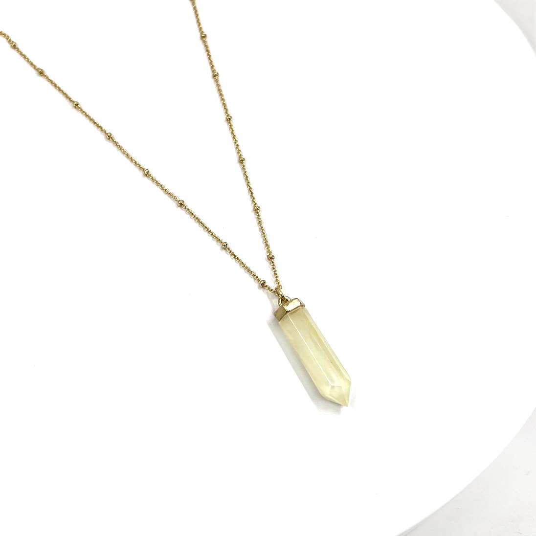 Clear quartz point gemstone from Brazil is used to create this gorgeous necklace.