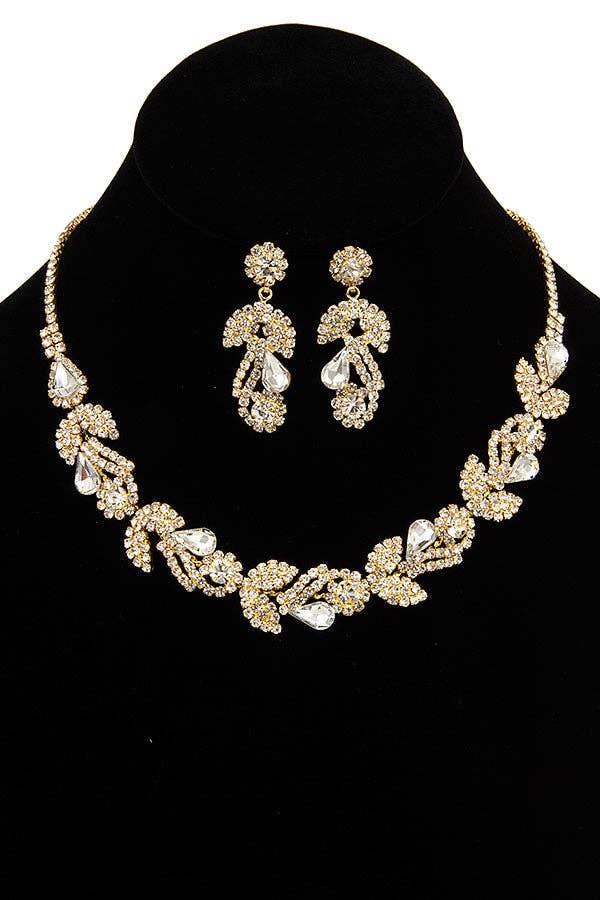 Fashion Jewelry Set Rose Gold Plating Crystal Rhinestone Necklace Earrings Set