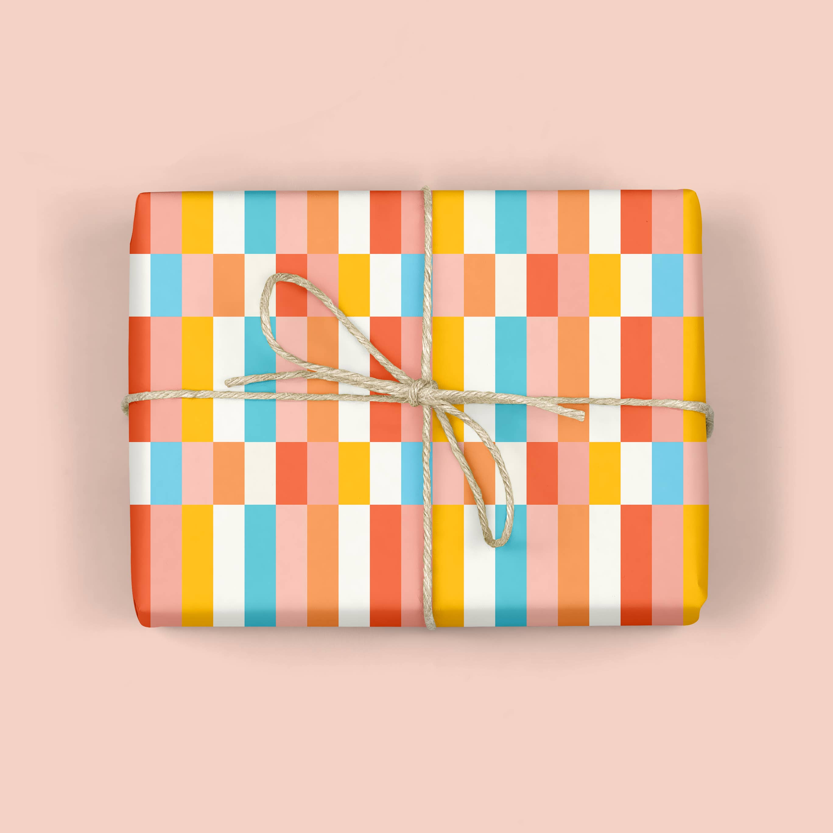 A blush and warm yellow MODERN QUILT design inspired by the simple geometry of vintage quilts. Use this versatile wrapping paper to wrap birthday gifts, housewarming gifts or wrap some fresh flowers for mother's day to make them extra special! Printed in rich color on thick luxurious paper which makes it easy to wrap with perfect folds. The paper cuts clean and does not rip while wrapping. - 1 Roll of 3 sheets - Each sheet measures 20" x 29" - Printed on 70# matte paper - Designed and printed in the USA - Packaged in a clear plastic sleeve THIS LISTING IS FOR A WRAPPING PAPER ROLL. A ROLL IS 3 FLAT SHEETS ROLLED IN A PLASTIC SLEEVE FOR EASY MERCHANDISING. . PLS SEE OUR OTHER LISTING IF YOU PREFER FLAT SHEETS FOR YOUR STORE.