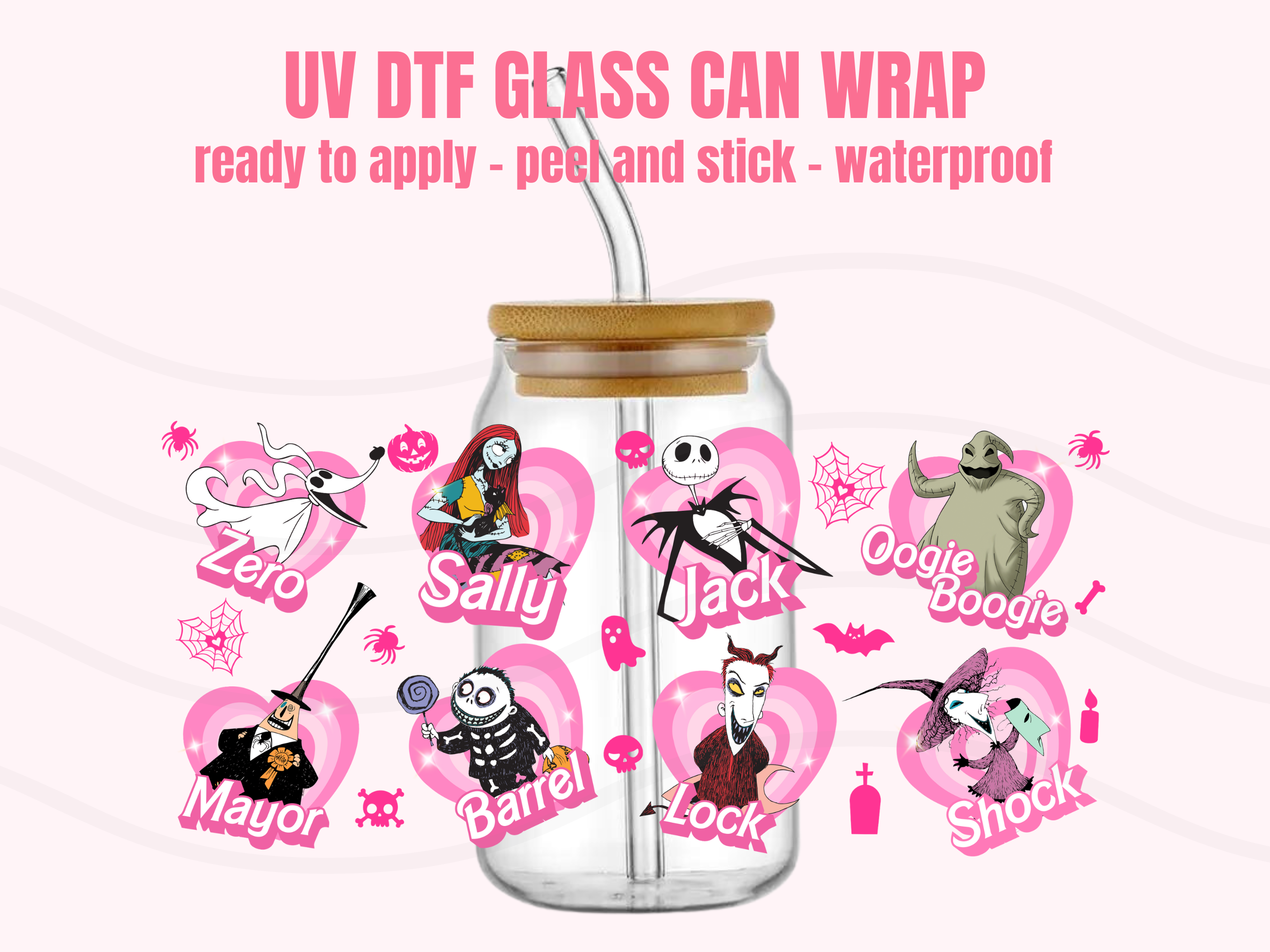 PRODUCT DETAILS Perfect for the fall, halloween season, spooky season crafts. This listing is for one (1) UV DTF adhesive cup wrap for a 16oz Glass Cup size. Size of transfer wrap: 9" x 4 Glass cup NOT included.