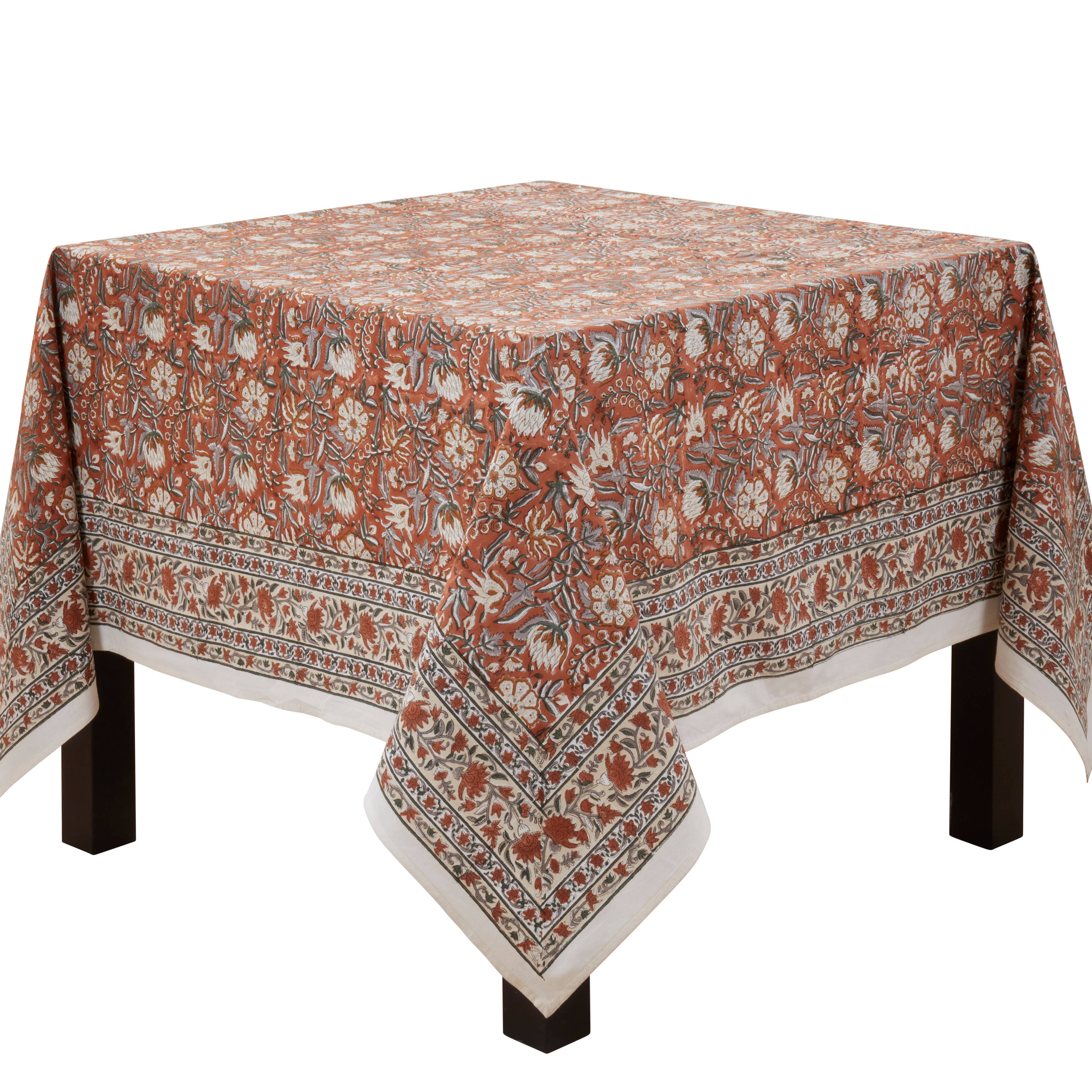 Size: 54" Square, 72" Square, 84" Square, 72" Round, Material: Polyester Color: Red Multi Care: Hand wash
