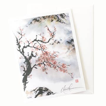 Ally Bartoszewicz Art - Wholesale Everyday Greeting Card - "DC in Blossom" folded greeting card , feat. cherry blossoms