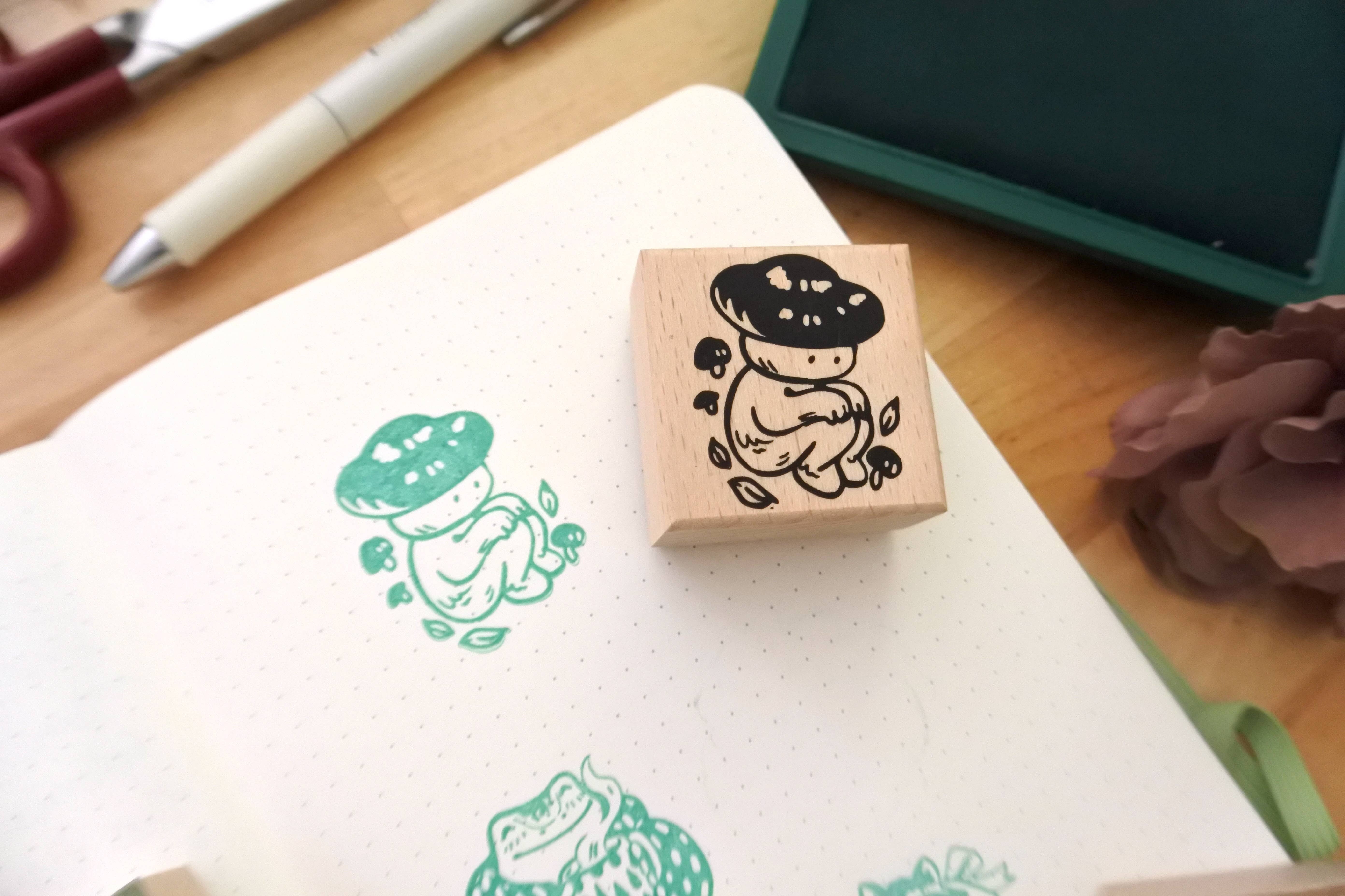 Your customers will love this sweet frog illustration and the versatility of this mini stamp. This frog stamp provides a detailed impression that can fit in a bullet journal, on a postcard, gift tag, or envelope. It can also be repeated to create a pattern. This stamp will add a fun detail to any crafting or writing project your customer wants to create! All our rubber stamps start out as hand illustrations. The artwork is then sent to our USA manufacturer who creates the rubber portion of our stamp. Then the rubber stamps are assembled and hand stamped in our studio.
