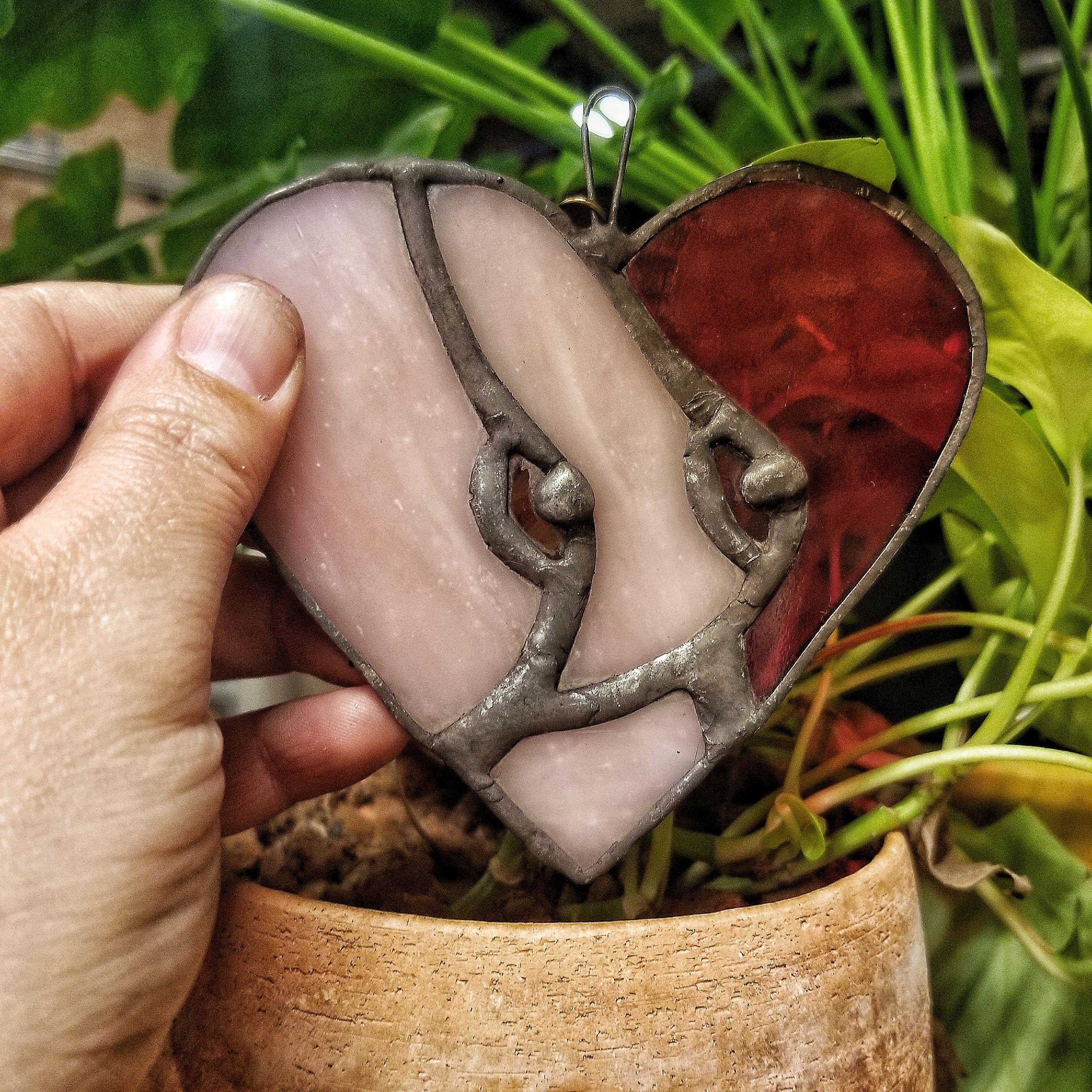 This is a fun and silly, lead free stained glass penis in your color choice. Measuring 4.5 inches x 2 inches (not adding chain) and chain added for hanging. Lots of color choices available or let me know if you want a specific color option/combination. I can attach a loop or circle at the top.