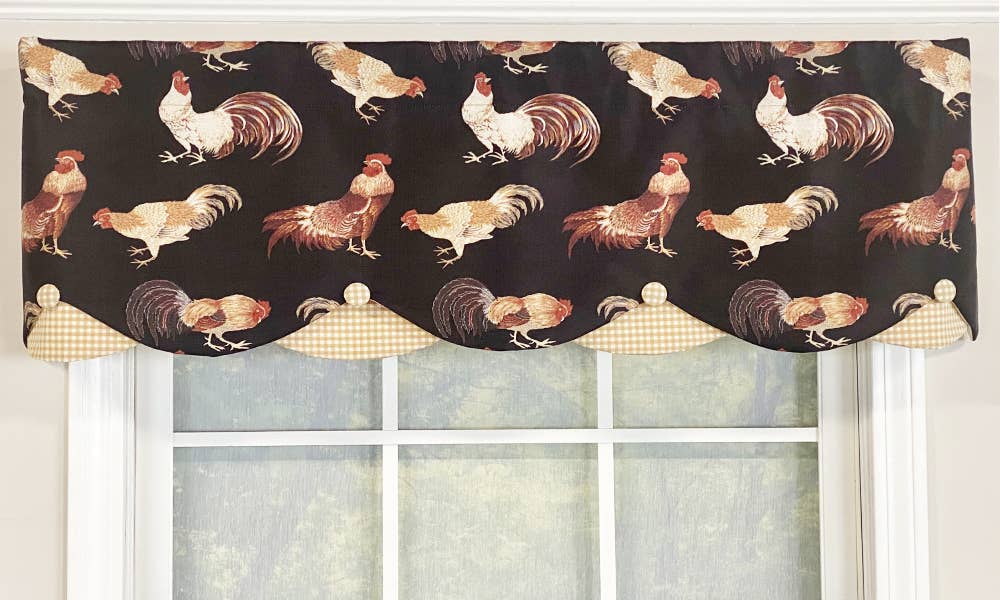 Add a touch of rustic charm to your home with the Rise And Shine Rooster Valance. Measuring 72" x 15.5", this delightful window treatment is perfect for those who appreciate the cozy aesthetics of primitive and country decor. Crafted from everyday cotton, the valance features a charming rooster applique in black against a warm oat background, creating a striking yet subtle contrast. Its versatile design makes it an ideal addition to kitchens, dining rooms, or any space that could use a hint of countryside elegance. Easy to hang and maintain, this valance not only enhances your window but also brings a welcoming, homey feel to your interior. Embrace the simplicity and warmth of country living with this beautifully crafted valance.