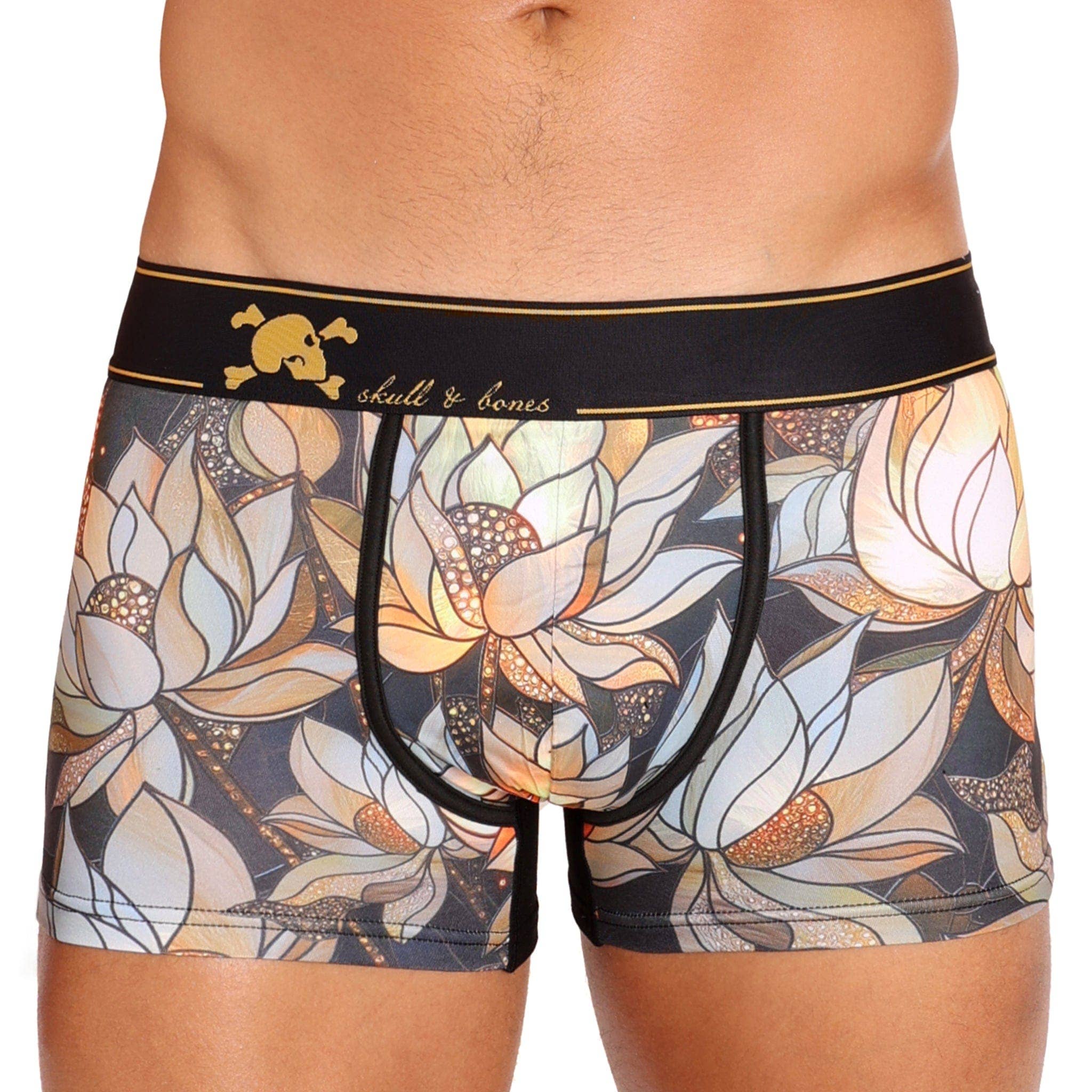 Dutch Floral Sky Blue A new take on traditional underwear, our hand-painted Dutch floral print celebrates the saturated blooms of still-life oil paintings from Dutch masters like Ruysch, de Heem, and Bosschaert. Mooi! This silhouette features a contour pouch with a double fabric layer gusset for ultimate comfort & support, a new "no-roll" waistband, and flat-lock stitching throughout for stretchability and uninhibited movement. Features our signature Skull & Bones logo embroidered on the back. * Style: Trunk * Color: Dutch Floral Sky Blue * Sizes: XS-3XL * Fiber: 90% polyester, 10% elastane