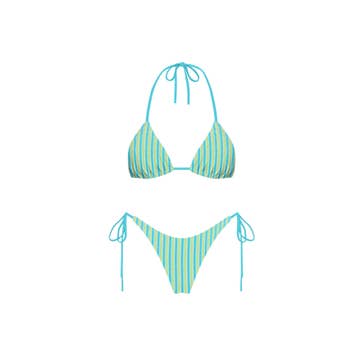 The Hammies Bikini is based on one of the original bikini styles from the 1960s. It combines elements from a couple of our favorite vintage finds. The body and rick rack are made with 15% stretch to accommodate bodies of all shapes and sizes. The white contrasting trim match the details of our Cabana Set and really complete that mid-century look. Unlike our original Bikini, the Cabana Stripe Bikini is available as separates (top and bottom) and it's reversible! The Cabana Stripe Bikini can be worn with stripe print or solid color facing out, or mix-and-matched. The cut and fit of the Cabana Stripe Bikini are the same as the original Bikini. The Cabana Stripe Bikini is our latest and greatest of many pieces that celebrate the exuberant and underappreciated styles from 1950-60s swim style. This is your grandma's bikini! * 🌱 85% polyester, 15% elastic * 🤸♀️ Sporty fit, leisurely look * 💎 Reversible (cabana stripe print on one side, solid color on the other), contrast rick rack * ✨ 1960s-inspired cut The Inspiration The History The history of the swimsuit is a fascinating tale of American and European prudishness of dress starting in the early 20th century. Prior to the 1940s, most women swam in full garb, including dresses, stalkings, boots, and a weight belt to keep them from floating. Men's swimwear was much less oppressive in comparison (essentially a wool onesie until barechestedness became acceptable in the 1930s). The bikini took the fashion stage in the 1930s but didn't gain public acceptance until the 1960s. For the next 40 years, the swimsuit, and the bikini specifically, pushed the limits of American fashion and modesty more than any other wardrobe item. If you want to learn more, we recommend Making Waves: Swimsuits and the Undressing of America by Lena Lenček and Gideon Bosker.