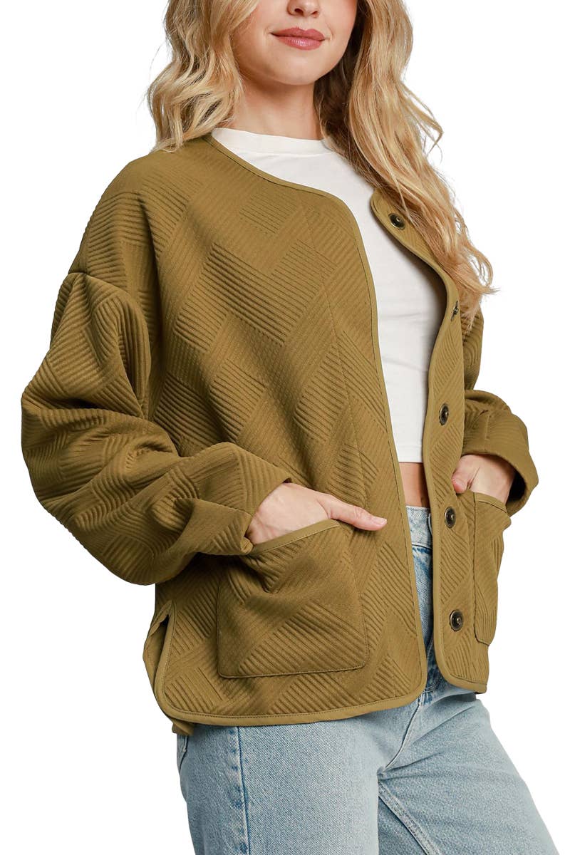 Leisure Days Textured Oversize Zip-Up Hooded Jacket