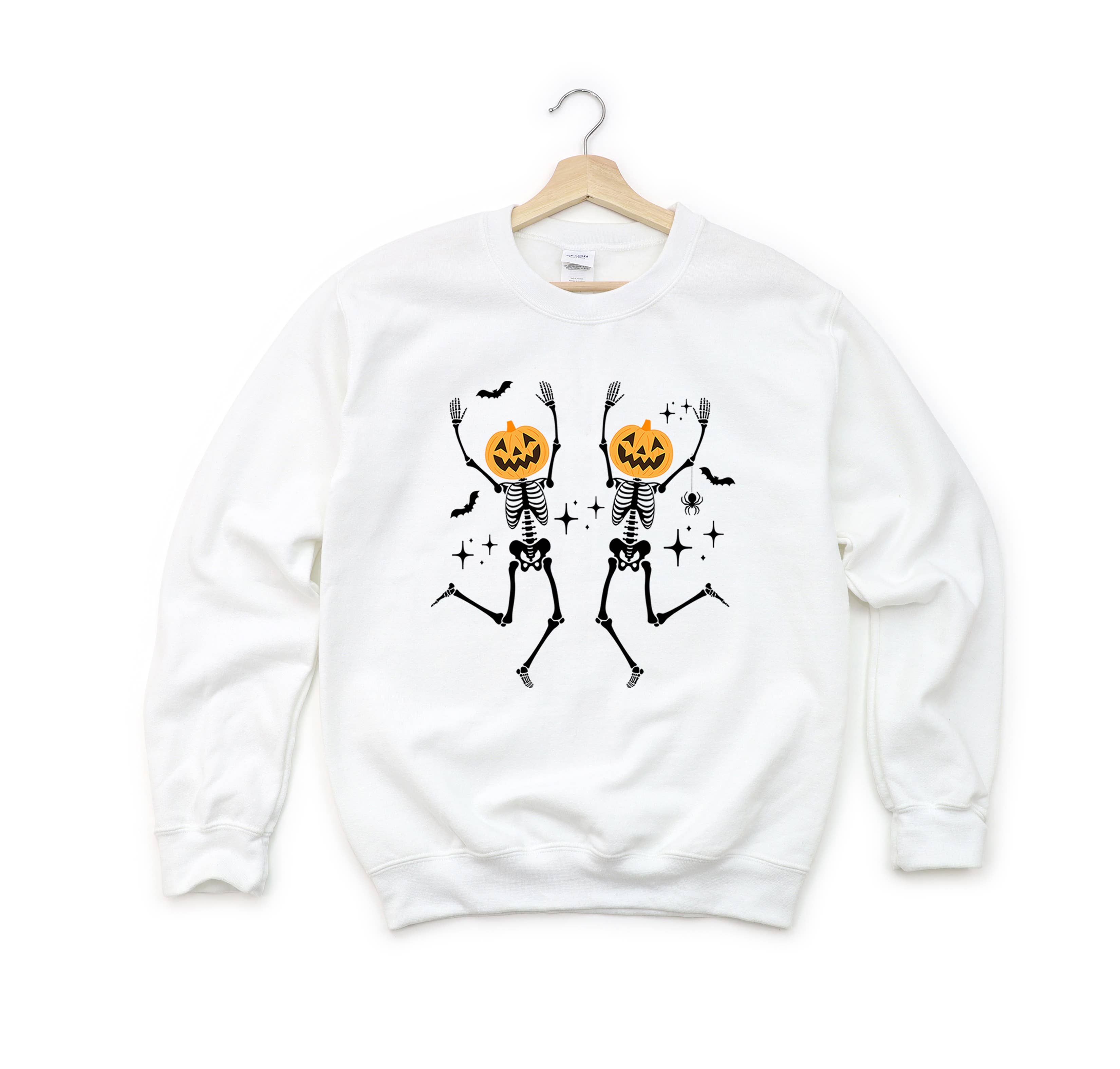 Spooky Cluster of Halloween Favorites Features & Sizing *Crewneck, pullover styling *Long Sleeve Sweashirt *Print as shown in pictures Materials & Care 7.5 oz./yd² (US), 12.5 oz./L yd (CA), 60/40 cotton/polyester White is sewn with 100% cotton thread Coverstitched collar, shoulders, armholes ribbed cuffs and waistband CPSIA compliant tracking label in side seam Easy Tear™ label