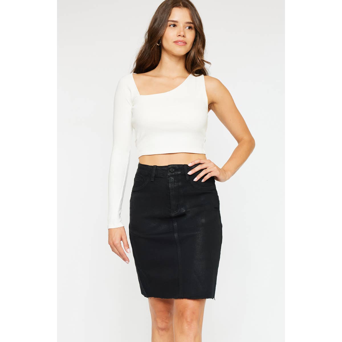 Our best-selling, wear-anywhere Textured Skirt is the ultimate in figure-flattering and versatile, travel-friendly wardrobe staples. Featuring our signature shape-smoothing fabric in a long and lean pencil silhouette with added texturing detail for an ultra-slimming effect. Hits just above the knee and with a seriously soft waistband for the perfect, dig-free fit. Pair it with any of our tanks or tops, and toss on your favorite blazer, jean jacket or Cashmere Ruana for an endless array of hi-low looks! Trust us, you'll love our slenderizing textures! Proudly Made in the USA. • Ultra-comfortable fit, wear after wear • One size fits most (REALLY!) • Machine wash cold, delicate, with like colors. Lingerie bag recommended. Hang or lay flat to dry.