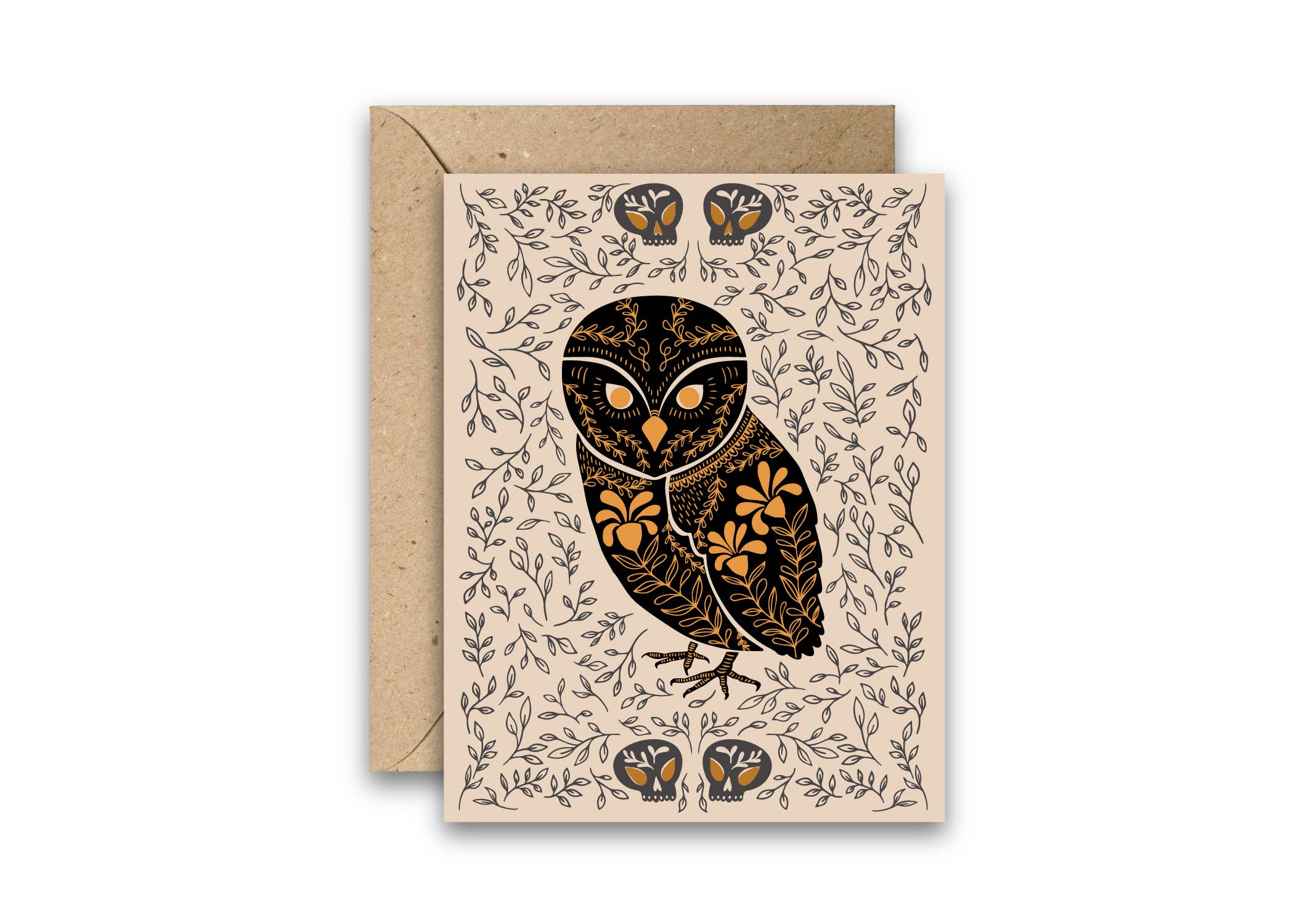 A2 size greeting card printed on 100# archival natural color paper. Includes an envelope and cellophane sleeve. The raven in clean modern shapes.