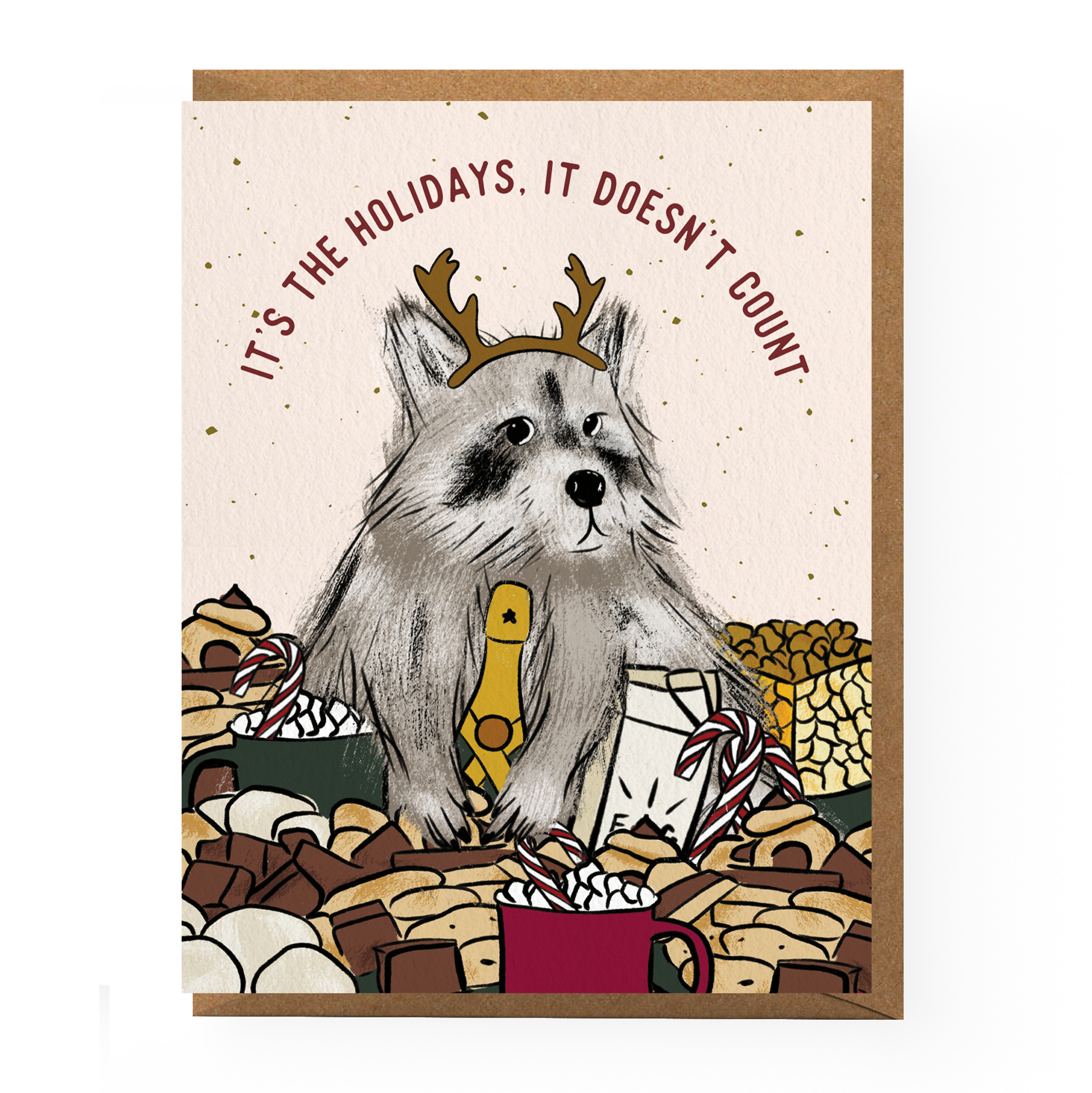 Wishing you holiday greetings from Olive the Otter Reindeer's Christmas Tree Farm! Printed on 110 lb watercolor texture paper. A2 Size: 4.25" x 5.5". Blank inside. White envelope included. Cards come in clear plastic sleeve or clear card box for set of 6 Original watercolor holiday otter illustration.