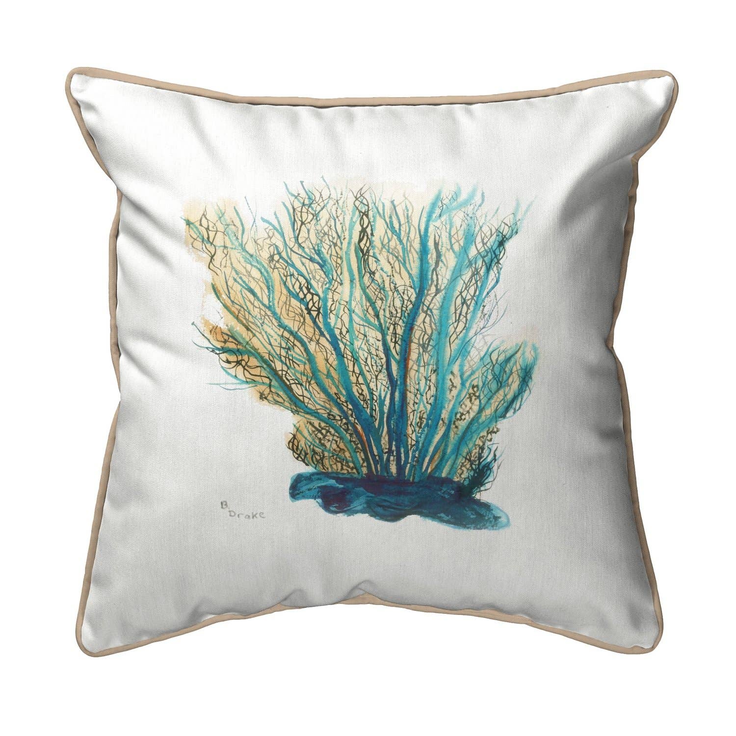 Features a vibrant navy-blue background with an ivory coral motif border. This classic subtle tropical design will effortlessly complement any space inside or outside your home. Masterfully woven in Egypt of weather-resistant soft 75% polypropylene/25% polyester face which creates the perfect soft touch for this pillow. It is easy-care and has a removeable cover with a durable zipper closure. Crafted on a traditional loom, then stitched to a durable polyester backing, this collection of pillows has a worldly aesthetic. The textiles combine interesting tones and patterns, bringing a chic ambiance to your space.