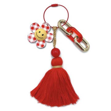 Introducing the Smiley Flower Tassel Keychain from Do Everything In Love®, a brand known for its trendy and current fashion accessories. This keychain is crafted from 100% acrylic, ensuring durability and longevity. Its unique design features a smiley flower and a playful tassel, adding a fun touch to your everyday accessories. With dimensions of 6.5" x 2.4", it's the perfect size to make a statement without being overly bulky. Ideal for both men and women, this keychain is not only functional but also a fashionable addition to your collection.