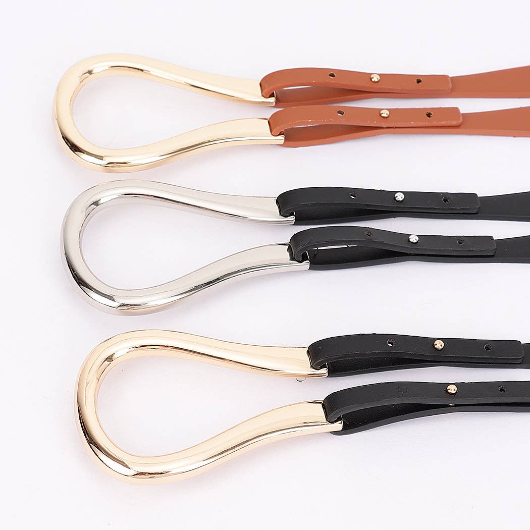 This slim leather belt features a reversible two-tone design with high-quality stitching. The gold-tone buckle adds a luxurious and elegant touch, making it a perfect accessory for both formal and casual outfits. Available in classic neutral colors such as black, beige, tan, and blush pink. * Material: Genuine leather * Design: Slim, reversible, dual-tone * Buckle: Polished gold-tone metal * Width: Thin and elegant * Occasion: Suitable for both casual and formal wear * Colors Available: Black, tan, blush pink, beige, white Size: 100cm (L) * 1.5cm (W) Material: Leather , Alloy