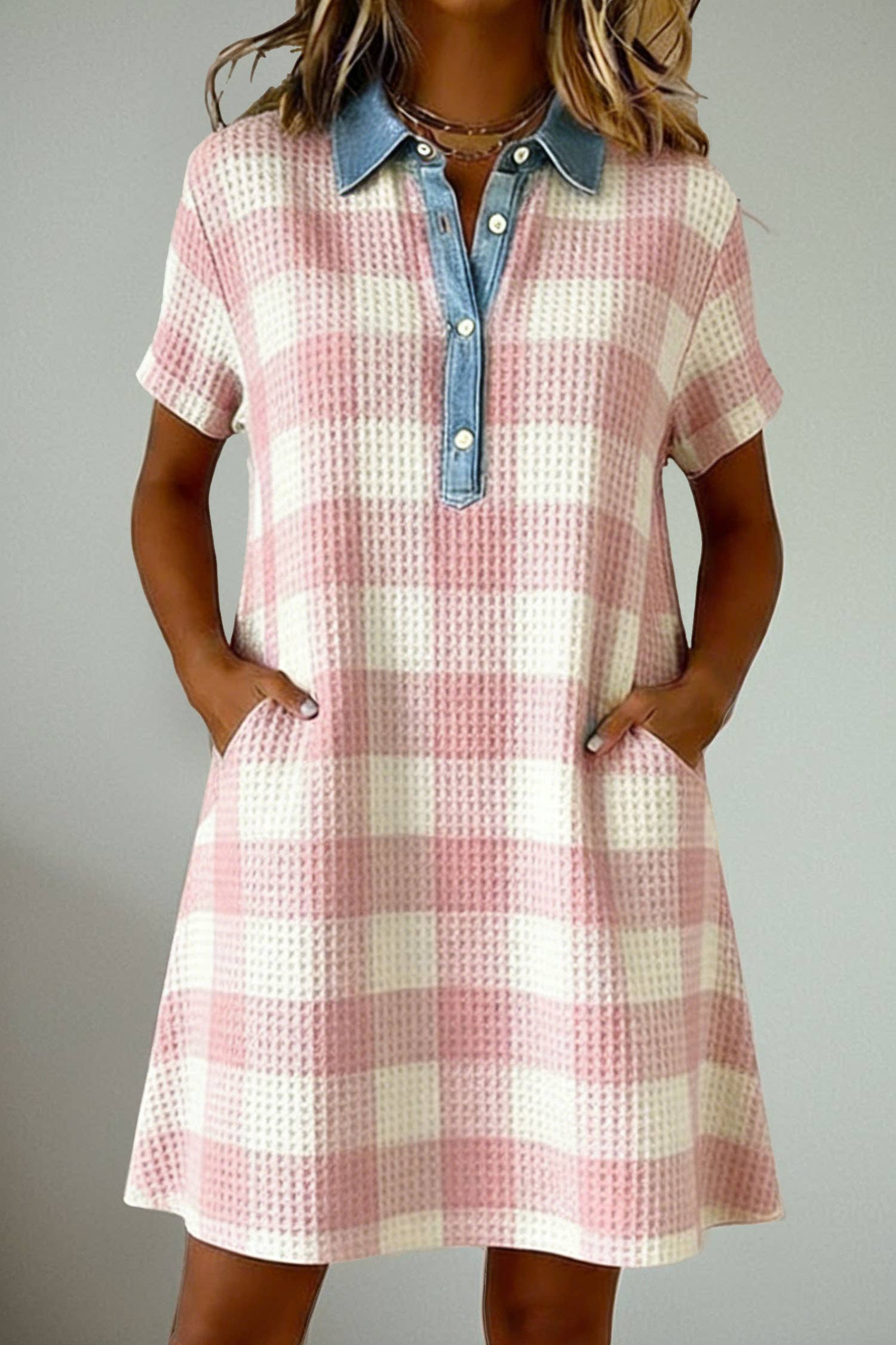 Made in China Aesthetic: Active and Casual Dress Style: A-line Fit: Contemporary and Missy Neckline: V-neck Occasion Theme: Everyday Occasion: Everyday Pattern: Plaid Season: Spring/Summer Skirt & Dress Length: Mini Sleeve Length: Sleeveless Product Language: English Weight: 435.45 g (15.36 oz)