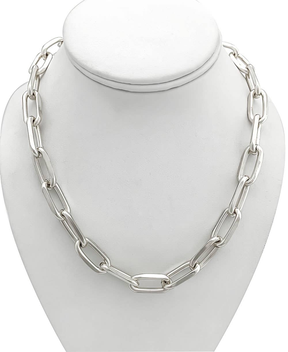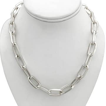 This is new chain link has become a classic! It is a must have for any jewelry collection for layering, and statement making on it's own! Length: 16" Closure: Lobster Clasp with 2" Extender Materials: Imitation Rhodium-Plated Brass SKU 2404