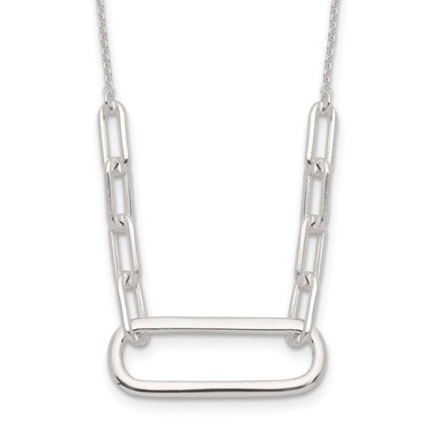 Paper Clip Chain Necklace|Silver|16"+Extender