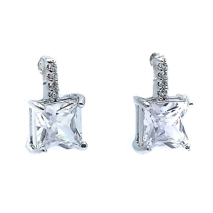 Stainless Steel Clear/Black Square CZ Stud Earrings