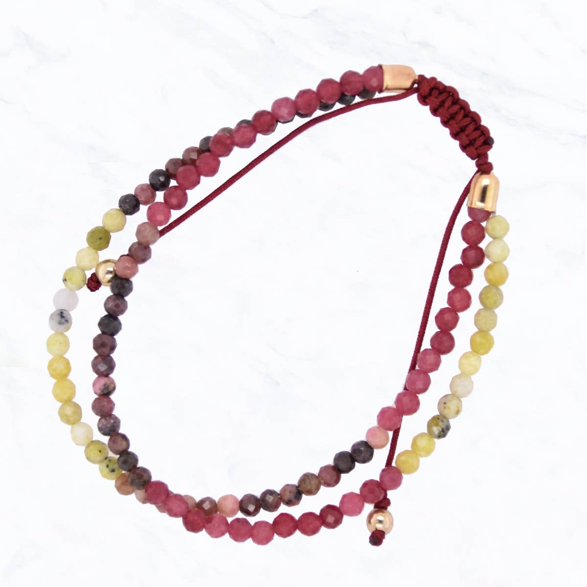 This pink, repurposed textile bracelet reminds us how important it is to live with kindness and empathy. It's attached to an attribute card that makes it perfect for gifting. Give a meaningful gift this holiday season! These carded bracelets make the perfect gifts for Christmas 2025 and stocking stuffers. • Measures approx. 7-8" in circumference; stretches to fit most. Beads measure 0.25" wide.• Embellished with two brass charms and a tonal tassel. • Due to repurposed textiles, colors will vary slightly. • Sustainably handmade by women artisans in India.