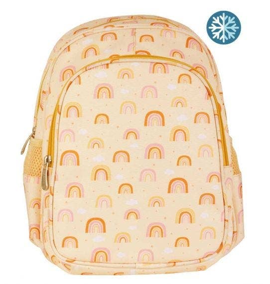 Lovely lightweight backpack with an insulated front pocket that ensures snacks and drinks stay cold (or warm). The front pocket easily fits a lunch box, drink bottle, and added snacks or fruit. The main compartment is large enough for all your school essentials, there is also an additional smaller pocket and two side drink bottle pockets. Thanks to the front buckle, the adjustable shoulder straps do not fall off and the bag always stays in place. There is extra filling on the back panel, and it has breathable layer for extra comfort. Matching lunch boxes, lunch and snack boxes and drink bottles are also available. Specifications: Dimensions: 10.6 x 7.5 x 12.6 inches/27 x 19 x 32 cm Material: lightweight polyester, PEVA Insulated front compartment which keeps the food cool and fresh Contents: 16 liters